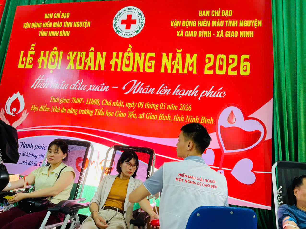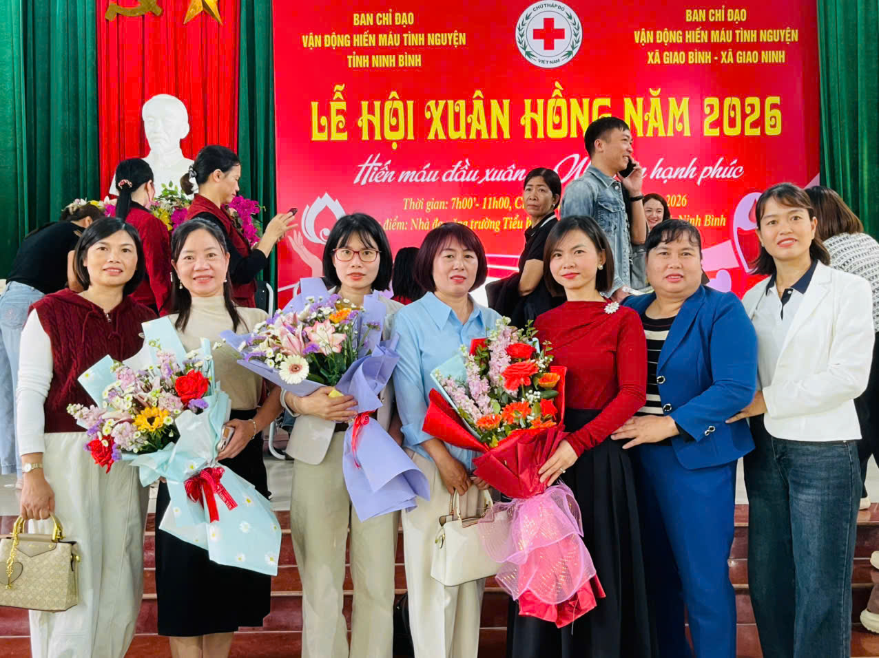 CB-GV-NV Trường Mầm non Giao Tân tham gia “Lễ hội Xuân Hồng 2026” – Hiến máu tình nguyện tại xã Giao Bình