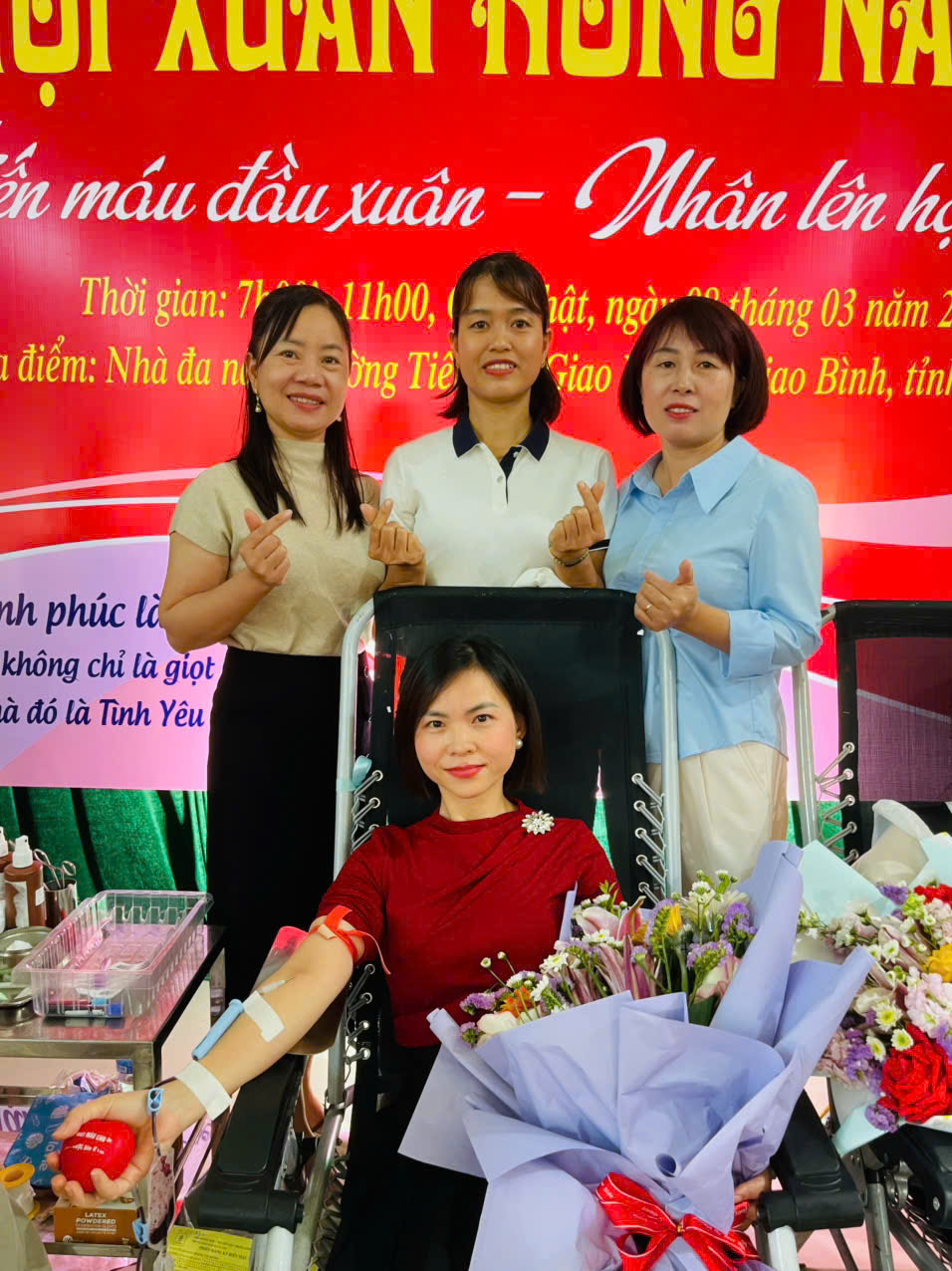 Hưởng ứng phong trào hiến máu tình nguyện với thông điệp “Một giọt máu cho đi – Một cuộc đời ở lại”, cán bộ, giáo viên, nhân viên Trường Mầm non Giao Tân đã tích cực tham gia Lễ hội Xuân Hồng – Hiến máu tình nguyện được tổ chức tại xã Giao Bình.