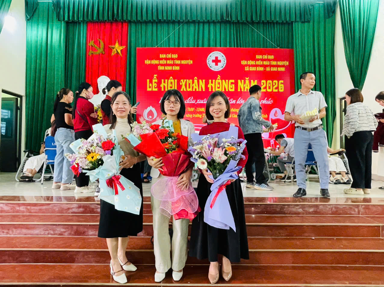 CB-GV-NV Trường Mầm non Giao Tân tham gia “Lễ hội Xuân Hồng 2026” – Hiến máu tình nguyện tại xã Giao Bình